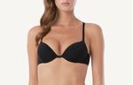 Sutiã Push-Up Bellissima, com um leve bojo e com aros, em renda. Enriquecido com um laço e brilhante entre as copas e com fitas no contorno do tórax em renda. Indicado para quem deseja uma forma natural e um leve suporte. As alças reguláveis foram concebidas para um maior conforto nos tamanhos maiores.